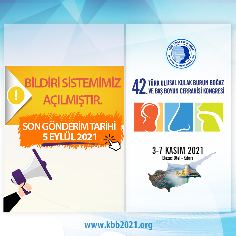 42. Türk Ulusal Kulak Burun Boğaz ve Baş Boyun Cerrahisi Kongresi Bildiri Son Gönderim Tarihi 5 Eylül 2021