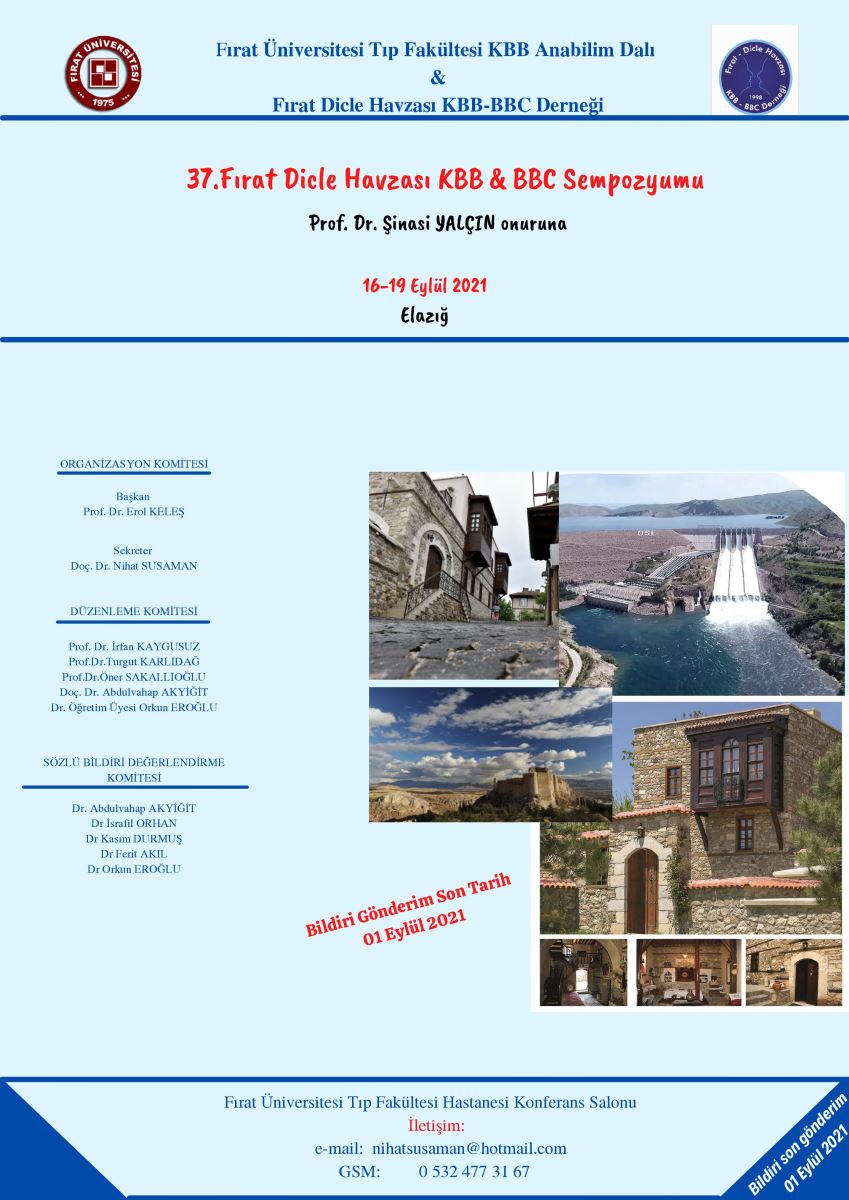 37.Fırat Dicle Havzası KBB&BBC Sempozyumu Bildiri Gönderimi İçin Son Tarih 1 Eylül 2021
