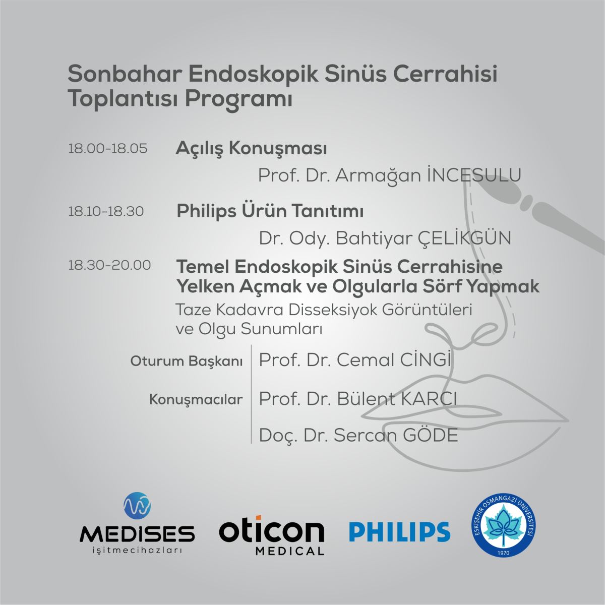 16 kasım 2021 de Eskişehir de Prof.Dr.Bülent Karcı ve Doç.Dr.Sercan Göde nin katılacağı Endoskopik sinüs cerrahisi toplantısı yapılacaktır.