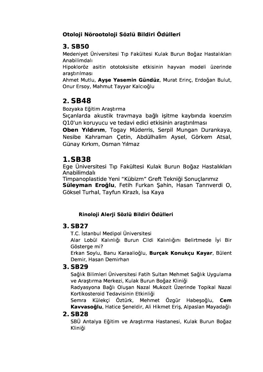42. Türk Ulusal Kulak Burun Boğaz ve Baş Boyun Kongresi Sözlü Bildirileri Sonuçları Açıklandı