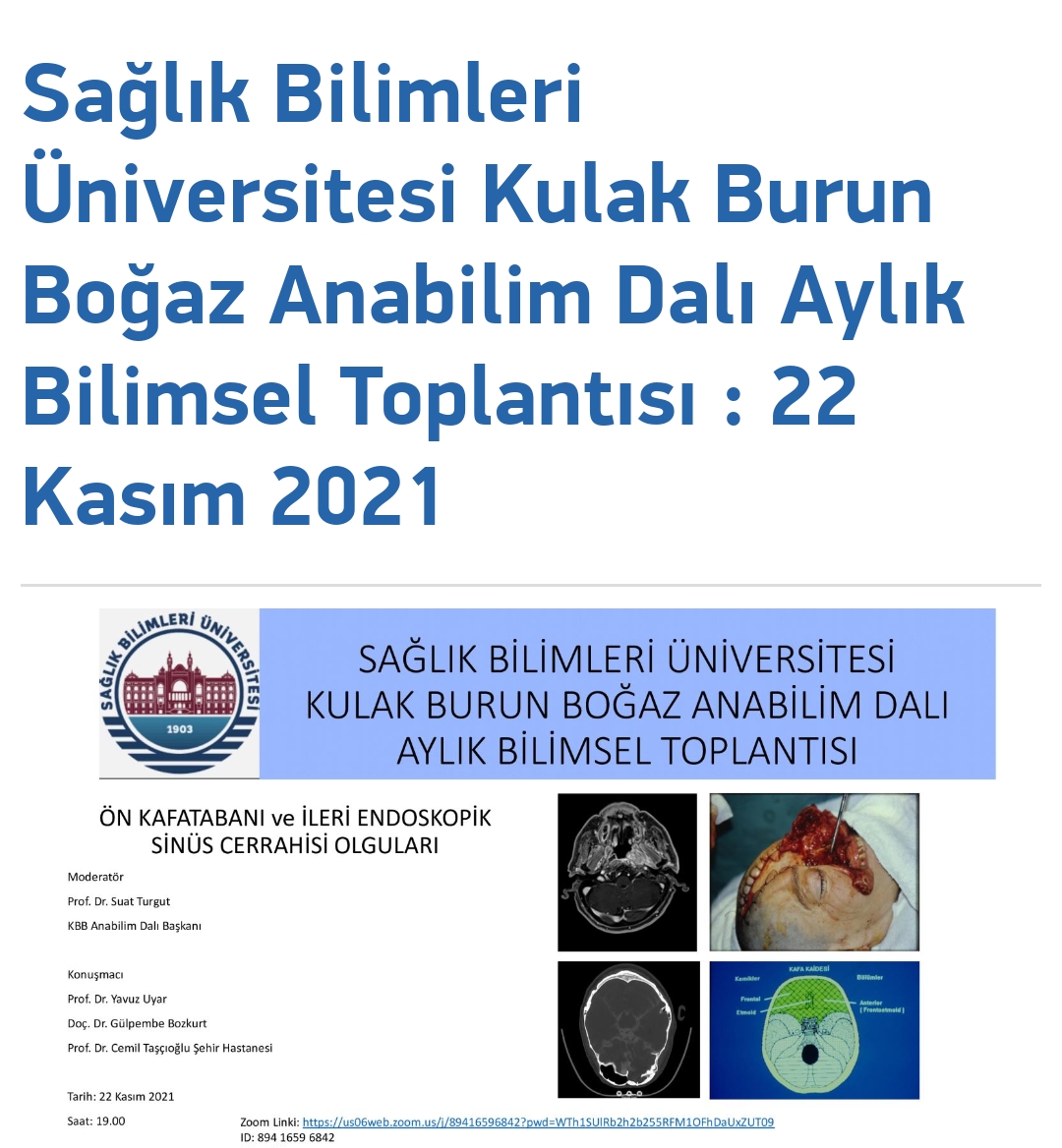 Sağlık Bilimleri Üniversitesi'nin aylık bilimsel toplantısı 22 Kasım 2021 pazartesi günü gerçekleştirilmiştir. Moderatörlüğünü Prof. Dr. Suat Turgut'un gerçekleştirdiği ve Prof. Dr. Yavuz Uyar, Doç. Dr. Gülpembe Bozkurt ve Prof. Dr. Cemil Taşcıoğlunun konuşmacı olarak katıldığı toplantı, bilimsel içeriği ve geniş katılımı ile yoğun ilgi görmüştür.