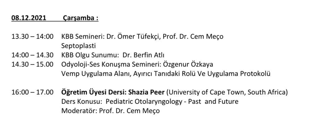 Ankara Tıp KBB Seminerleri : 8 Aralık 2021