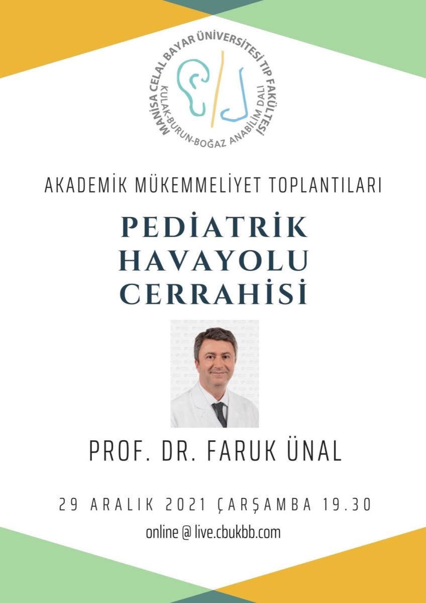 Manisa Celal Bayar Üniversitesi Kulak Burun Boğaz Hastalıkları Anabilim Dalı'nın düzenlediği Akademik Mükemmeliyet Toplantıları'nda siz değerli meslektaşlarımızı da aramızda görmekten onur duyarız.