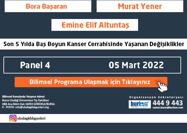 Uludağ 2022 KBB Günleri Otorinolarengolojinin Çakraları: Son 5 Yılda Baş Boyun Kanser Cerrahisinde Yaşanan Değişikler
