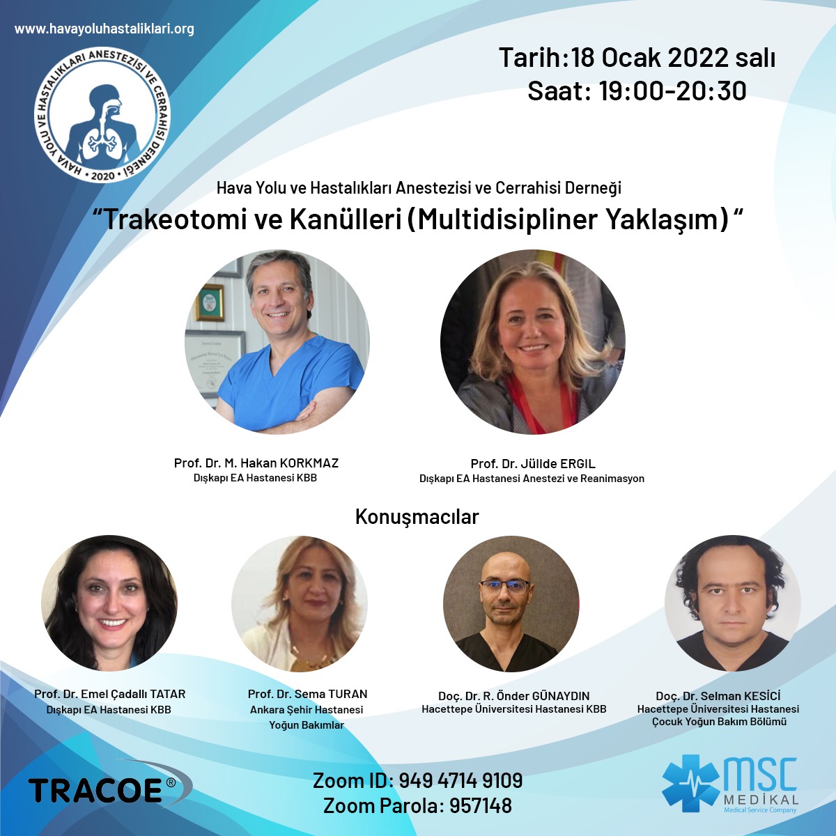 Hava Yolu ve Hastalıkları Anestezisi ve Cerrahisi Derneği Trakeotomi ve Kanülleri (Multidisipliner Yaklaşım): 18 Ocak 2022