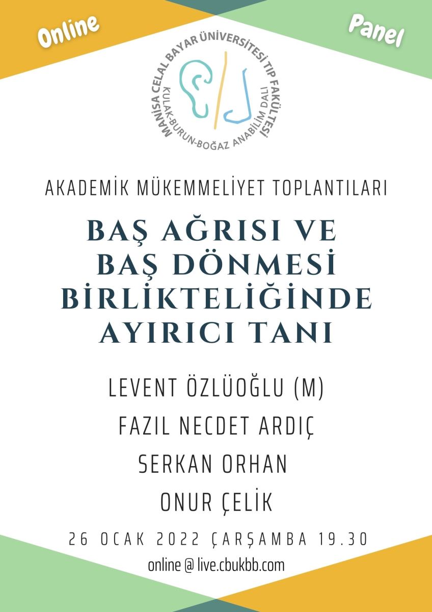 Manisa Celal Bayar Üniversitesi Kulak Burun Boğaz Hastalıkları Anabilim Dalı'nın düzenlediği Akademik Mükemmeliyet Toplantıları'nda siz değerli meslektaşlarımızı da aramızda görmekten onur duyarız.