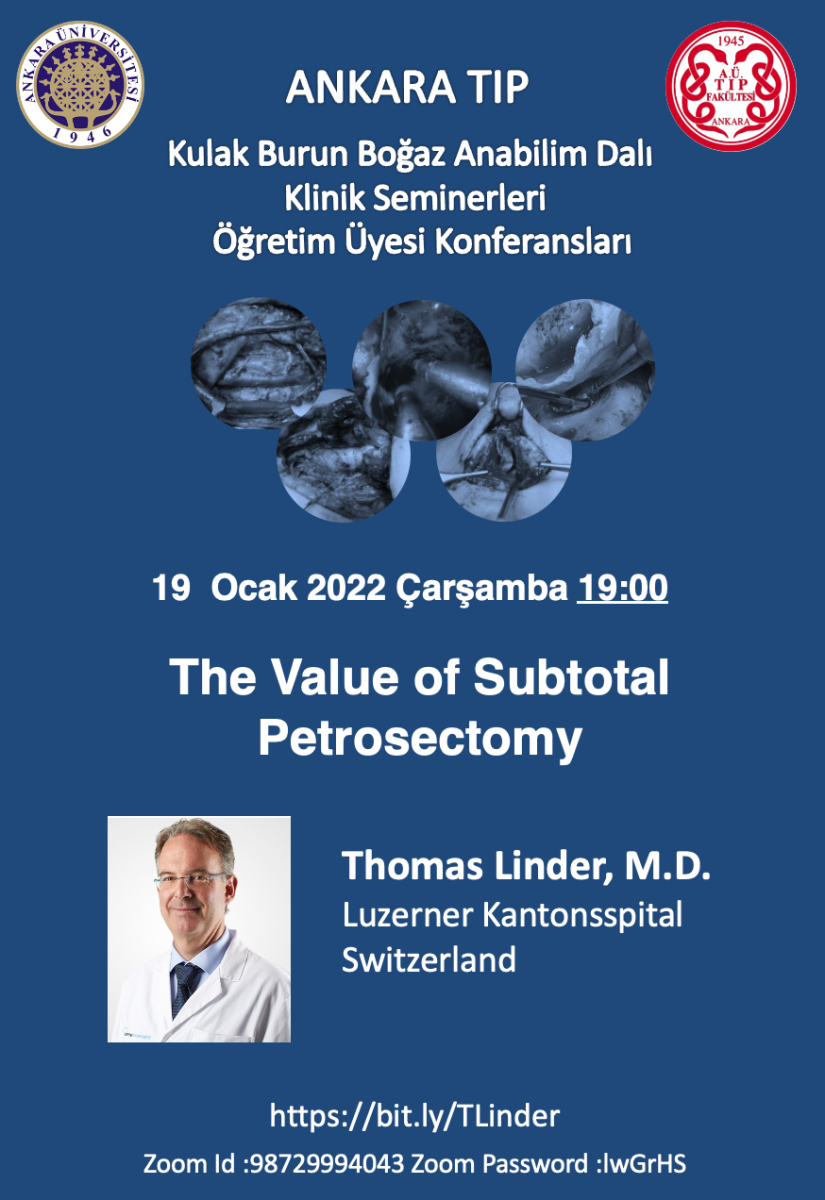 Ankara Üniversitesi Tıp Fakültesi Kulak Burun Boğaz Hastalıkları Klinik Seminerleri Öğretim Üyesi Konferansları’nı, her hafta Çarşamba günü akşam Zoom üzerinden izleyebilirsiniz.