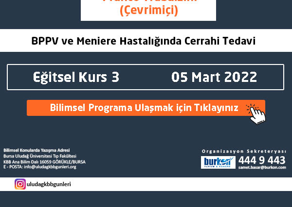 Uludağ 2022 KBB Günleri Otorinolarengolojinin Çakraları: BPPV ve Meniere Hastalığında Cerrahi Tedavi 4 Mart 2022