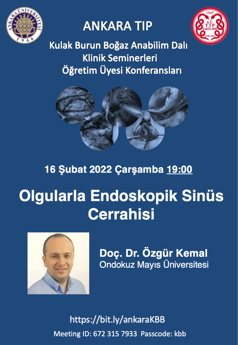 Ankara Üniversitesi Tıp Fakültesi Kulak Burun Boğaz Hastalıkları Klinik Seminerleri Öğretim Üyesi Konferansları’nı, her hafta Çarşamba günü akşam Zoom üzerinden izleyebilirsiniz.
