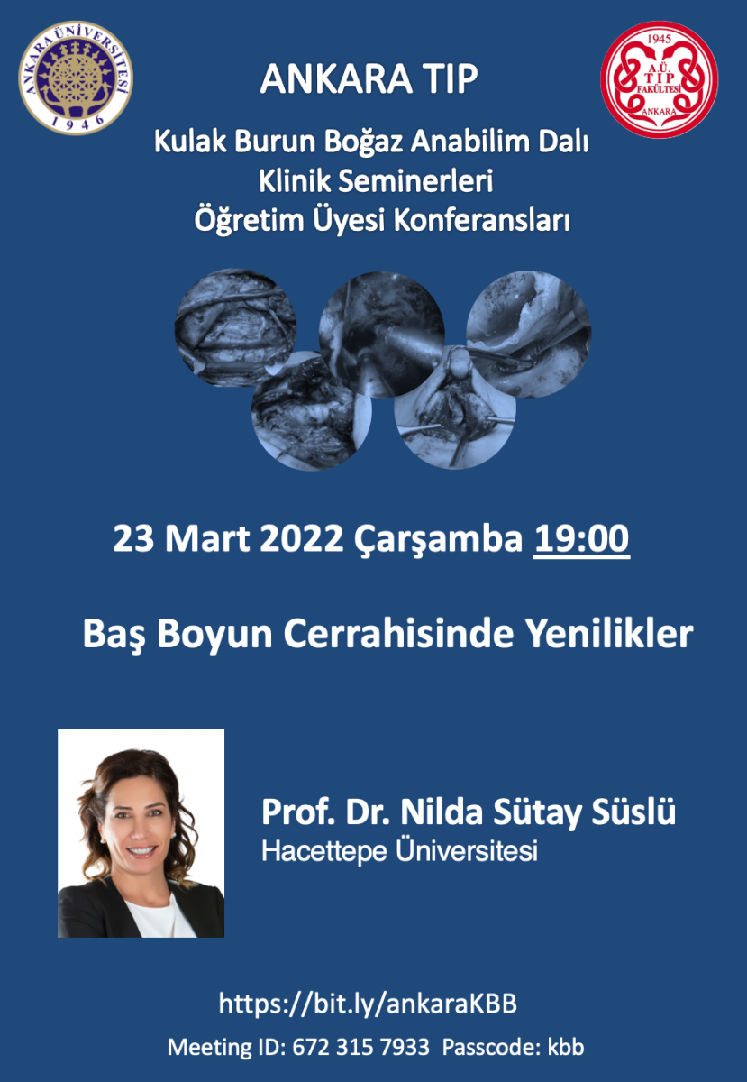 Ankara Üniversitesi Tıp Fakültesi Kulak Burun Boğaz Hastalıkları Klinik Seminerleri Öğretim Üyesi Konferansları’nı, Çarşamba günü Zoom üzerinden izleyebilirsiniz.