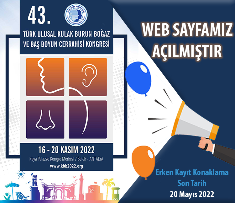 43. Türk Ulusal Kulak Burun Boğaz ve Baş Boyun Cerrahisi Kongresi Web Sayfası Açılmıştır !