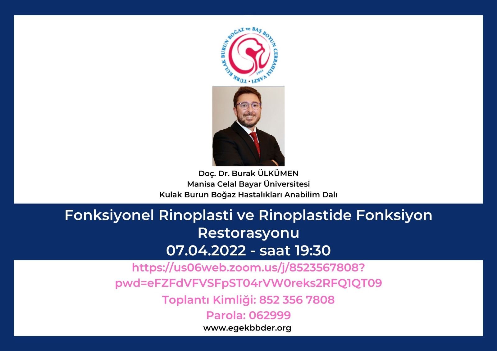 Türk Kulak Burun Boğaz ve Baş Boyun Cerrahisi Vakfı " Fonksiyonel Rinoplasti ve Rinoplastide Fonksiyon Restorasyonu ‘’: 7 Nisan 2022