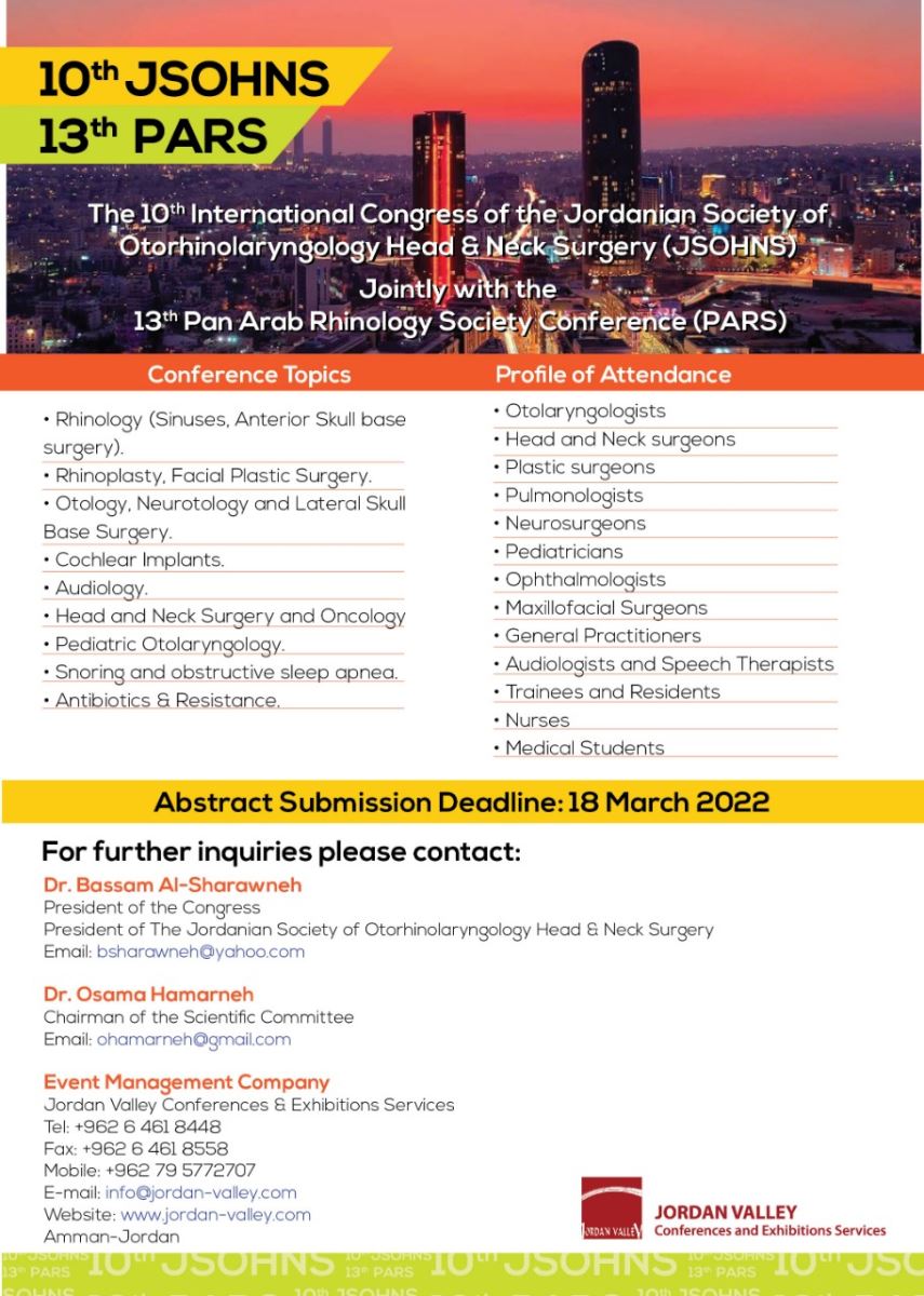 10.Ürdün Kulak Burun Boğaz Baş Boyun Cerrahisi Derneğinin Ortaklaşa Kongresi
