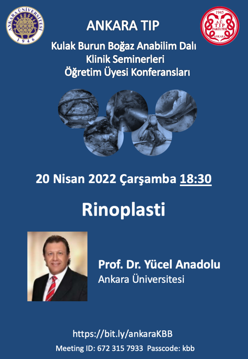 Ankara Üniversitesi Tıp Fakültesi Kulak Burun Boğaz Hastalıkları Klinik Seminerleri Öğretim Üyesi Konferansları’nı, Çarşamba günü Zoom üzerinden izleyebilirsiniz.