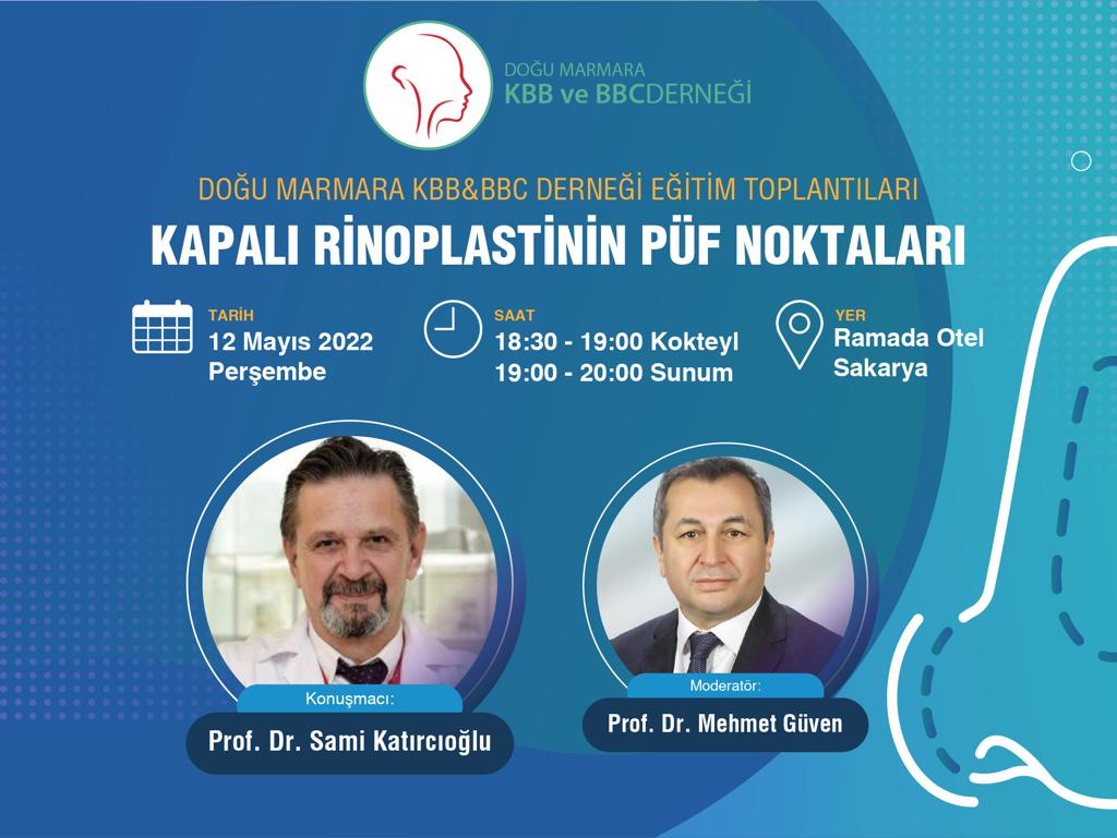 Doğu Marmara Kulak Burun Boğaz ve Baş boyun cerrahisi derneğinin düzenlediği eğitim toplantıları Mayıs ayında Sakarya Üniversitesi KBB kliniği ev sahipliğinde devam edecektir. Prof.Dr.Sami Katırcıoğlu’nun konuşmacı olarak yer alacağı Toplantıda “ Kapalı Rinoplastinin Püf Noktaları “ konuşulacaktır. Tüm meslektaşlarımız davetlidir.