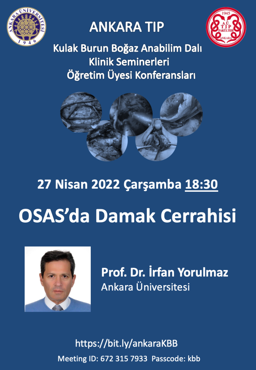 Ankara Üniversitesi Tıp Fakültesi Kulak Burun Boğaz Hastalıkları Klinik Seminerleri Öğretim Üyesi Konferansları’nı, Çarşamba günü Zoom üzerinden izleyebilirsiniz.