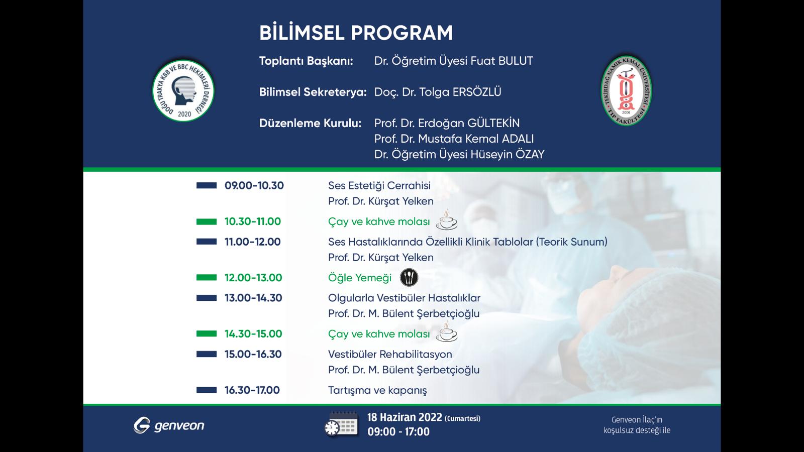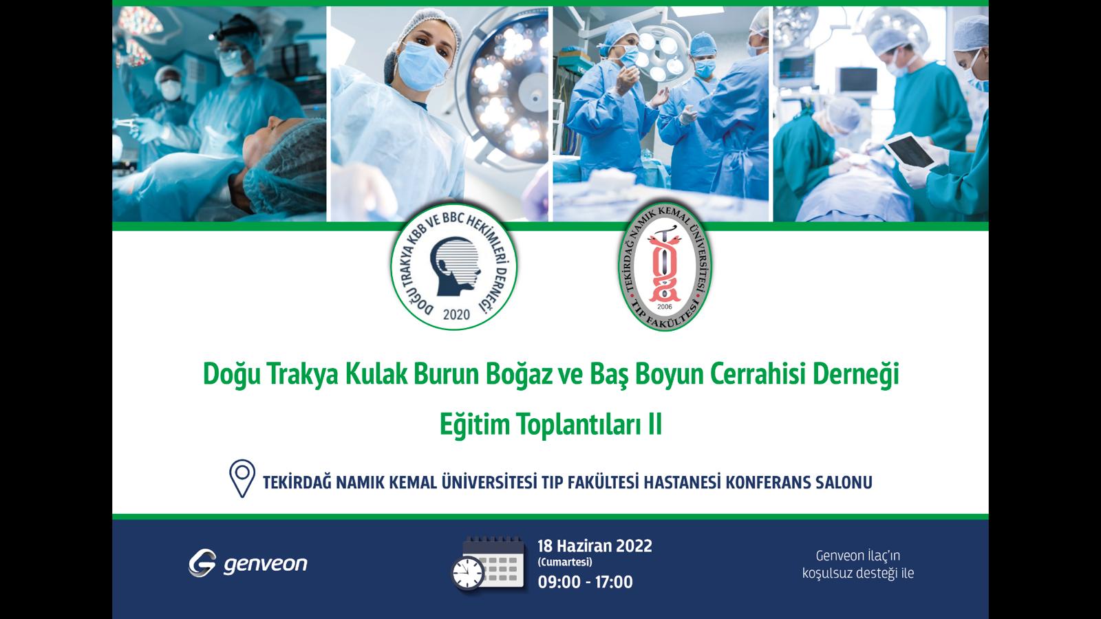 ”Doğu Trakya KBB BBC Derneği 2. Eğitim Toplantısı 18 Haziran 2022 tarihinde Prof Dr Kürşat Yelken “Ses Estetiği canlı cerrahi” Prof Dr M.Bülent Şerbetçioğlu “Olgularla Vestibüler Hastalıklar “konuşulacaktır.