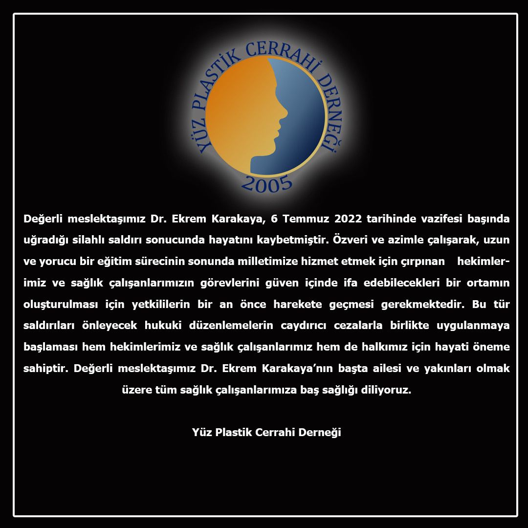 Yüz Plastik Cerrahi Derneğinden Dr. Erdem Karakaya için Taziye ve Kınama Mesajı