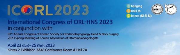Uluslararası ORL-HNS 2023 Kongresi (ICORL 2023), Kore Kulak Burun Boğaz-Baş ve Boyun Cerrahisi Derneği'nin 97. Yıllık Kongresi ve Kore Kulak Burun Boğaz Uzmanları Derneği'nin 2023 Bahar Toplantısı ile birlikte, 23-25 Nisan 2023’te KINTEX Kongre Merkezinde yapılacaktır.