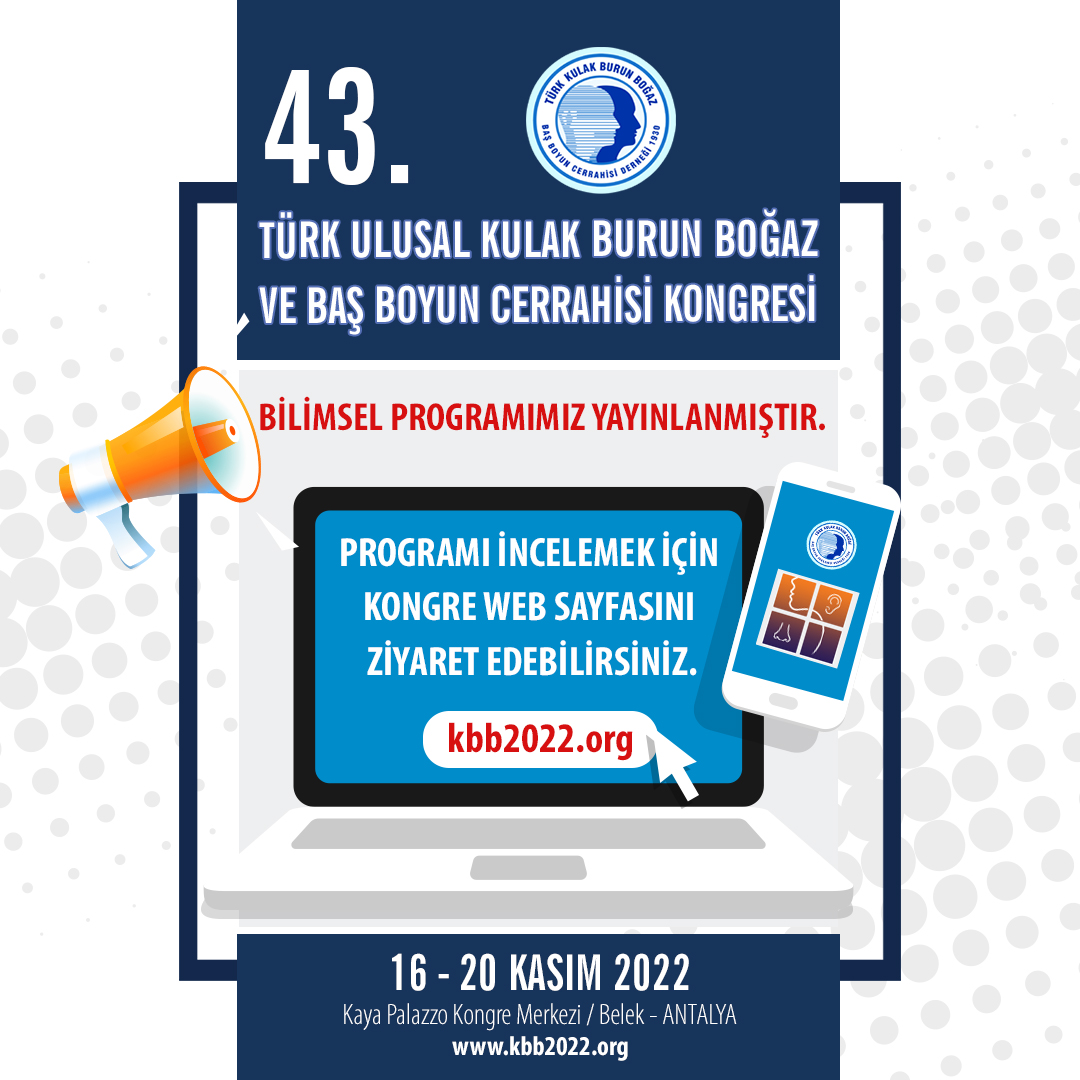 43. Türk Ulusal Kulak Burun Boğaz ve Baş Boyun Cerrahisi Kongresi Bilimsel Programı Yayınlanmıştır