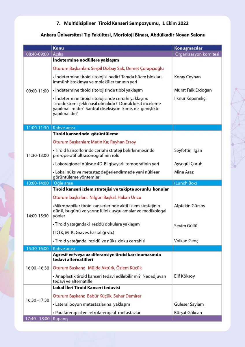 7. Multidisipliner Tiroid Kanseri Sempozyumu: 1 Ekim 2022 Ankara