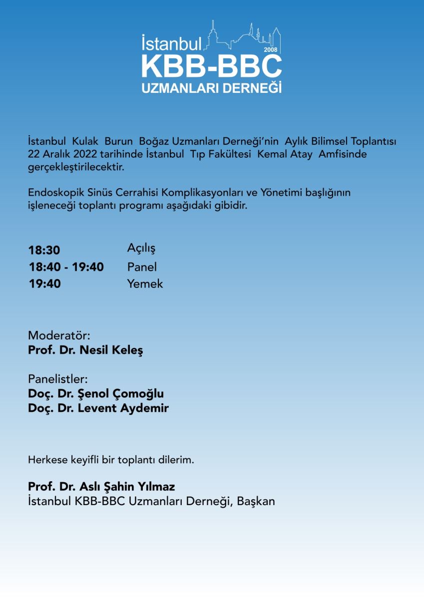 İstanbul KBB- BBC Uzmanları Derneği Aylık Bilimsel Toplantısı: 22 Aralık 2022
