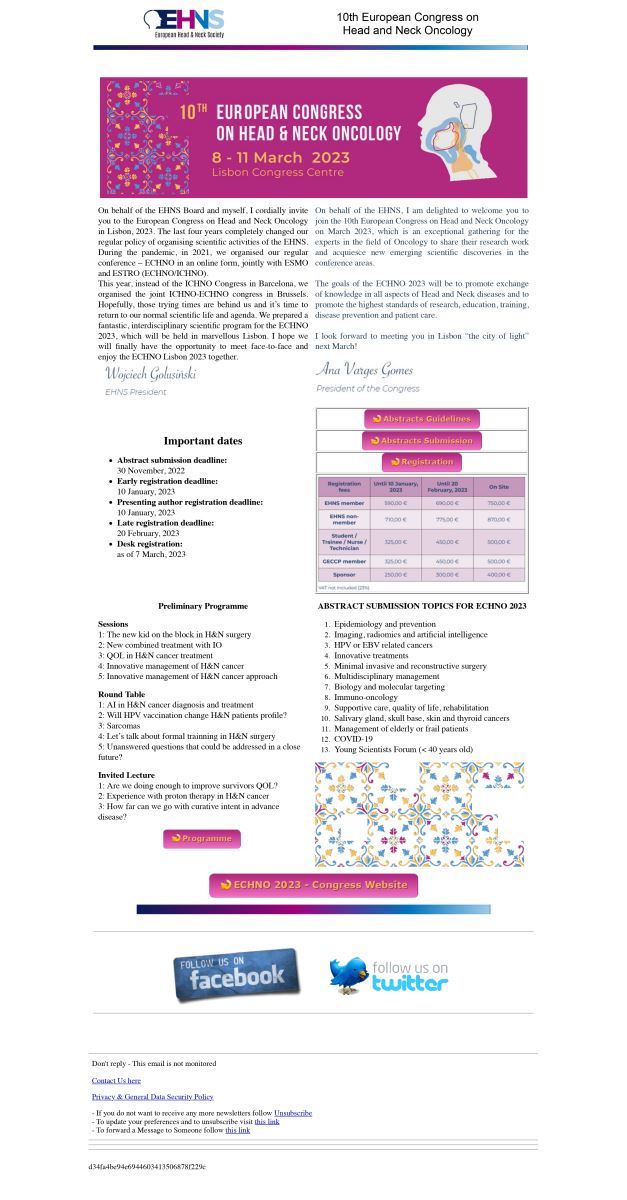 10th European Congress on Head and Neck Oncology: 8-11 March 2023