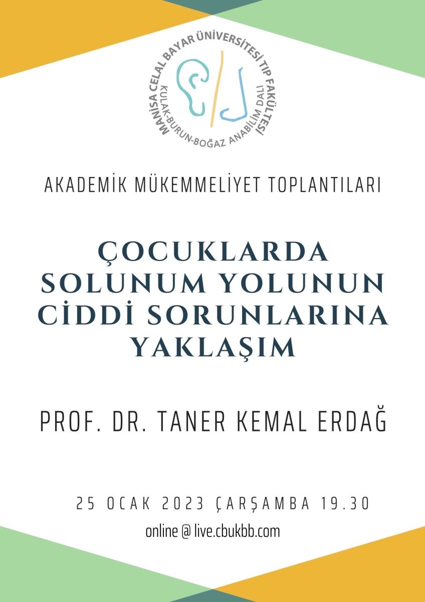 Manisa Celal Bayar Üniversitesi Kulak Burun Boğaz Hastalıkları Anabilim Dalı'nın düzenlediği Akademik Mükemmeliyet Toplantıları’nda siz değerli meslektaşlarımızı da aramızda görmekten onur duyarız.