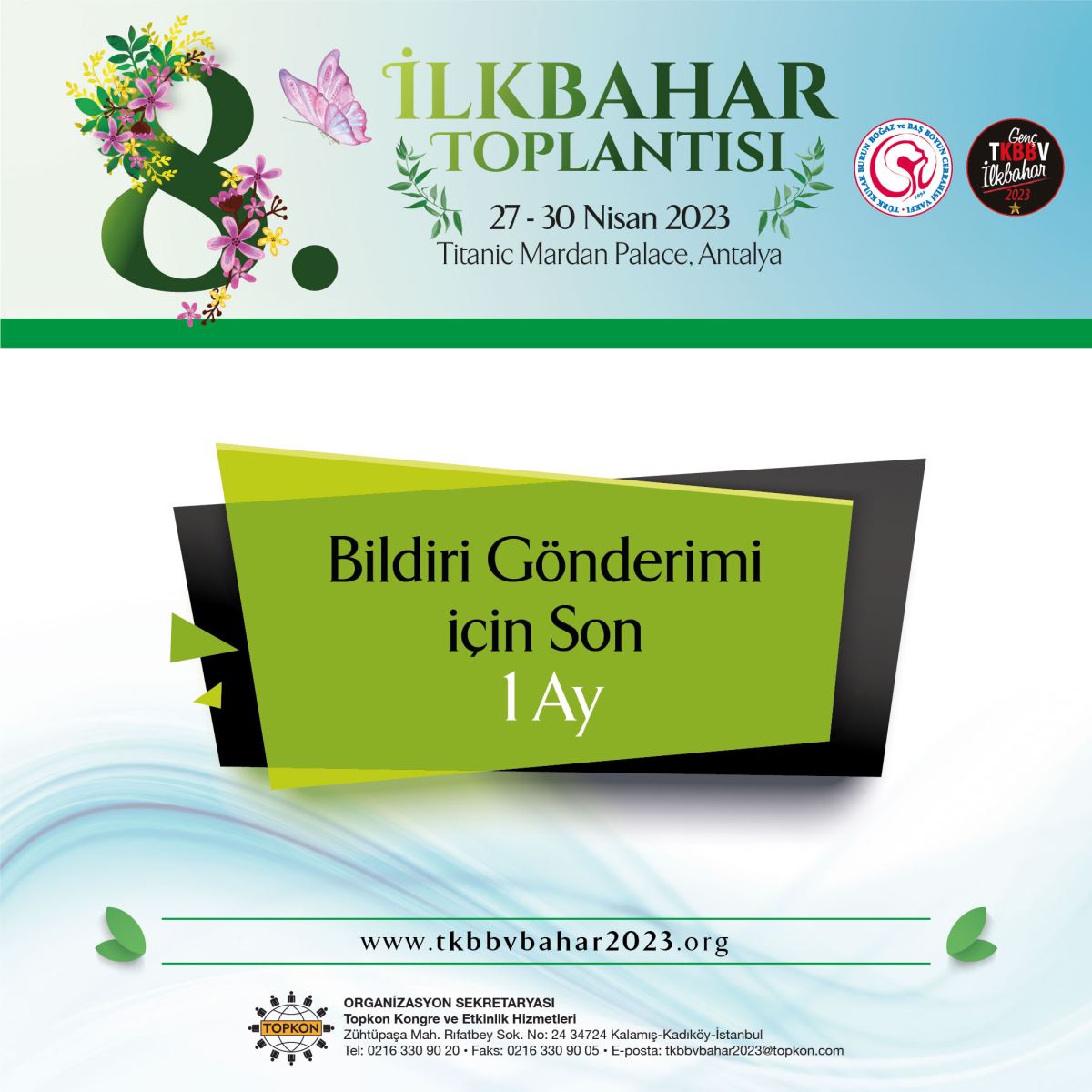 8. İlkbahar Toplantısı Bildiri Gönderimi için Son 1 Ay