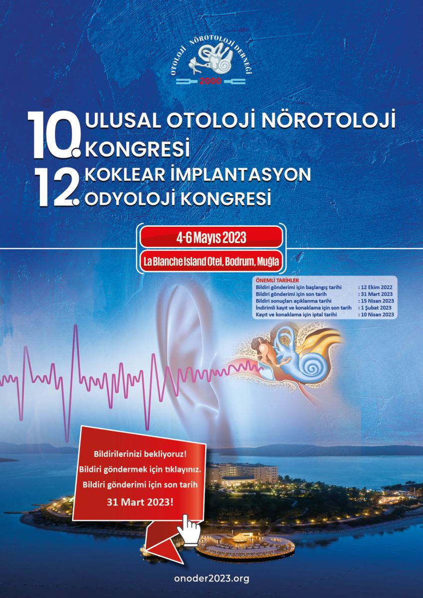 10. Ulusal Otoloji Nörotoloji Kongresi ve 12.Koklear İmplantasyon Odyoloji Kongresi Son Bildiri Gönderim Tarihi: 31 Mart 2023