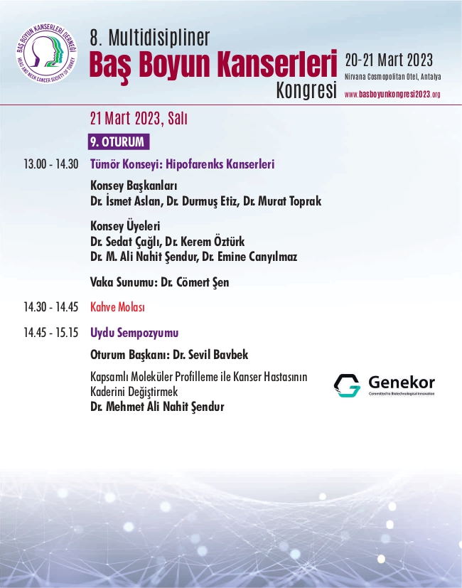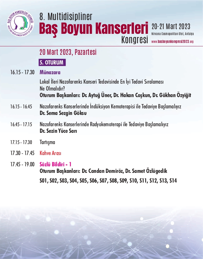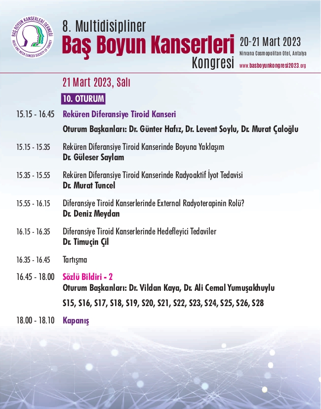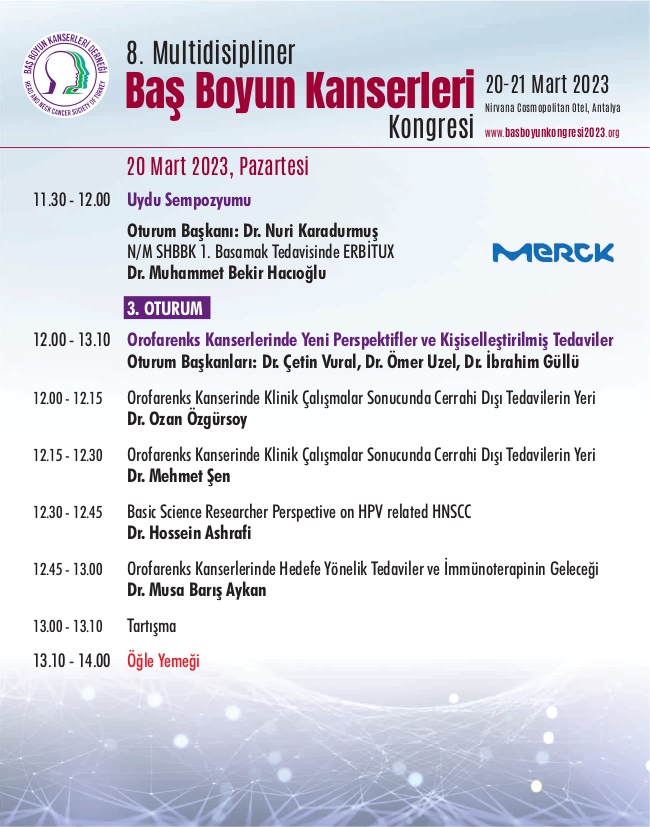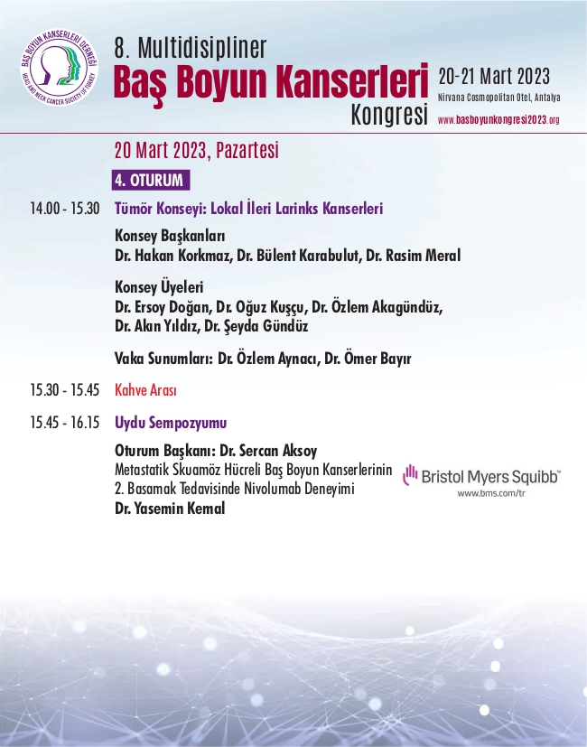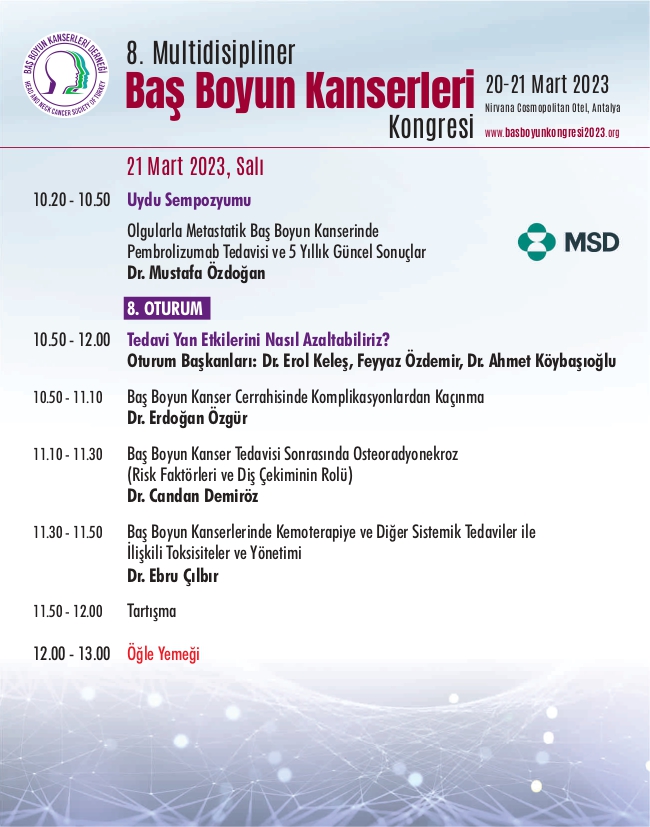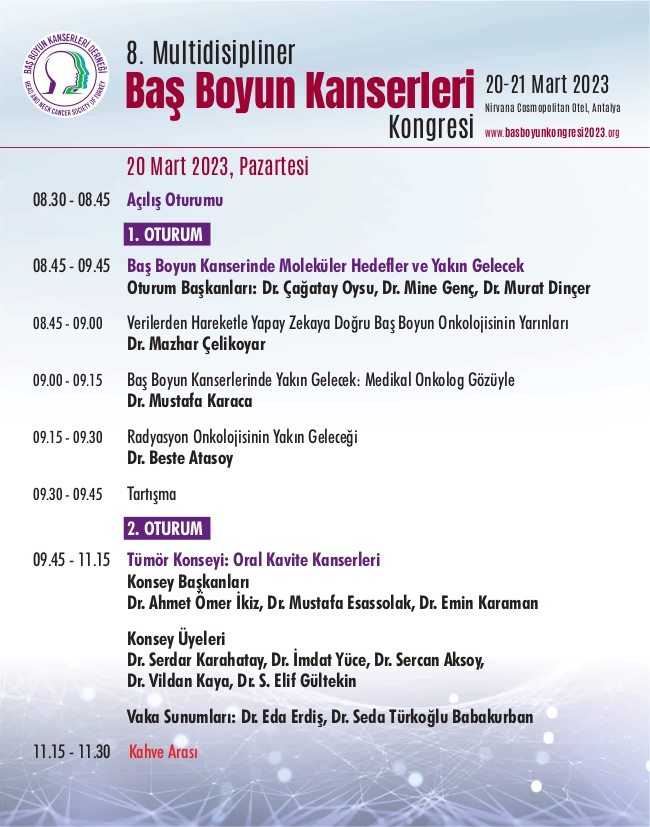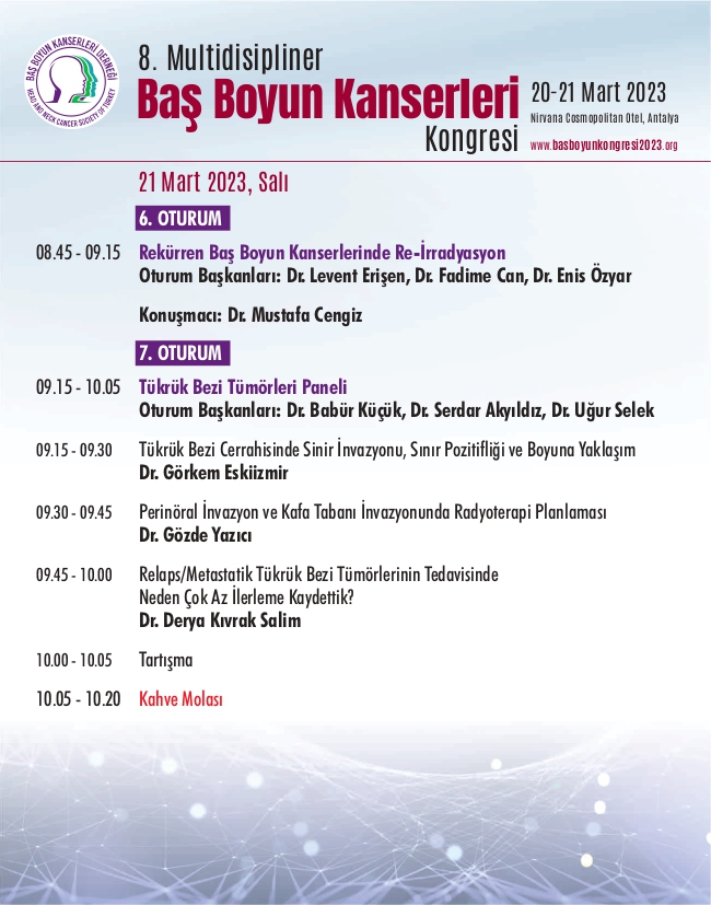 8.Multidisipliner Baş Boyun Kanserleri Kongresi Tarihi 20-21 Mart Olarak Güncellenmiştir