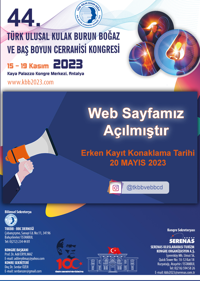 44. Türk Ulusal Kulak Burun Boğaz ve Baş Boyun Cerrahisi Kongresi Web Sayfası Açılmıştır