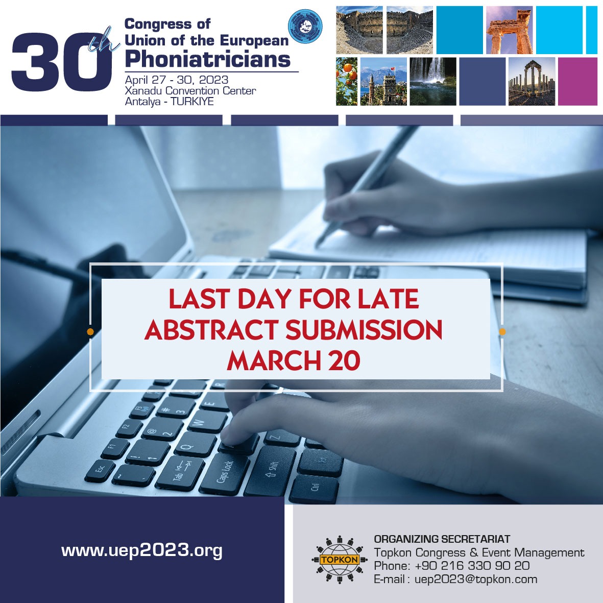 30th Congress of Union of The European Phoniatricians Last Day For Late Abstract Submıssıon March 20