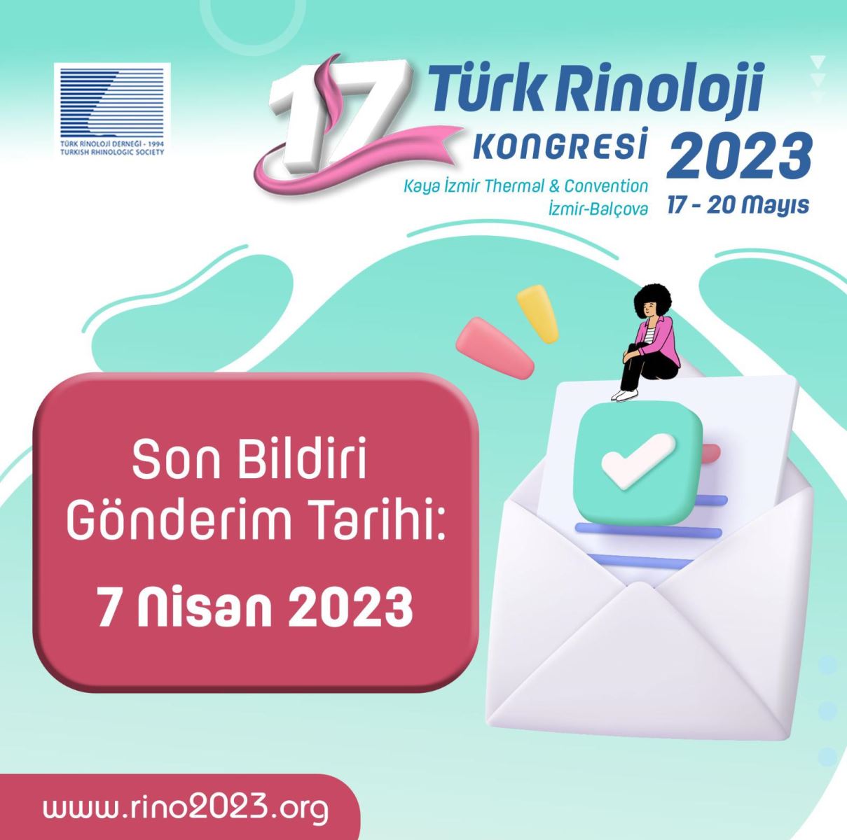17. Türk Rinoloji Kongresi Son Bildiri Gönderim Tarihi: 7 Nisan 2023