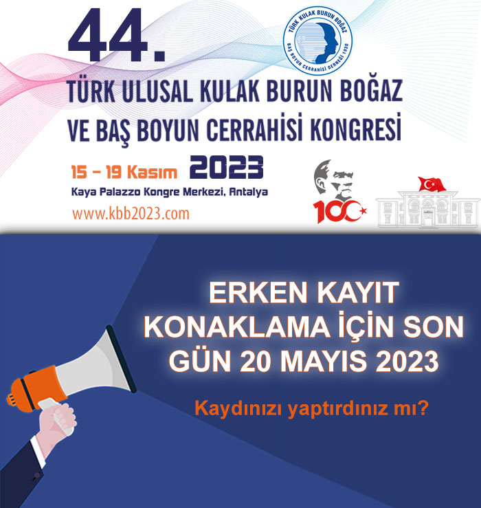 44. Türk Ulusal Kulak Burun Boğaz ve Baş Boyun Cerrahisi Kongresi Erkan Kayıt Konaklama İçin Son Gün 20 Mayıs 2023
