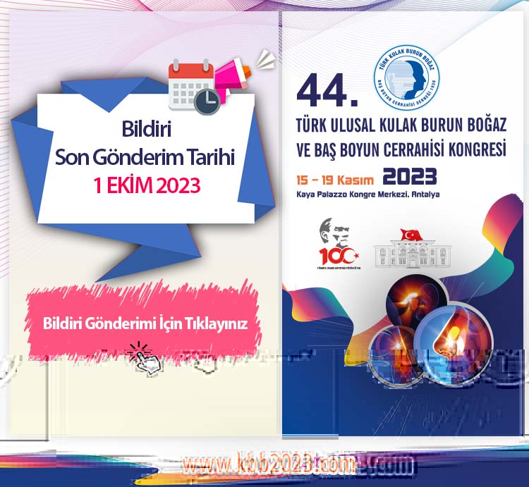 44. Türk Ulusal Kulak Burun Boğaz ve Baş Boyun Cerrahisi Kongresi Bildiri Son Gönderim Tarihi: 1 Ekim 2023