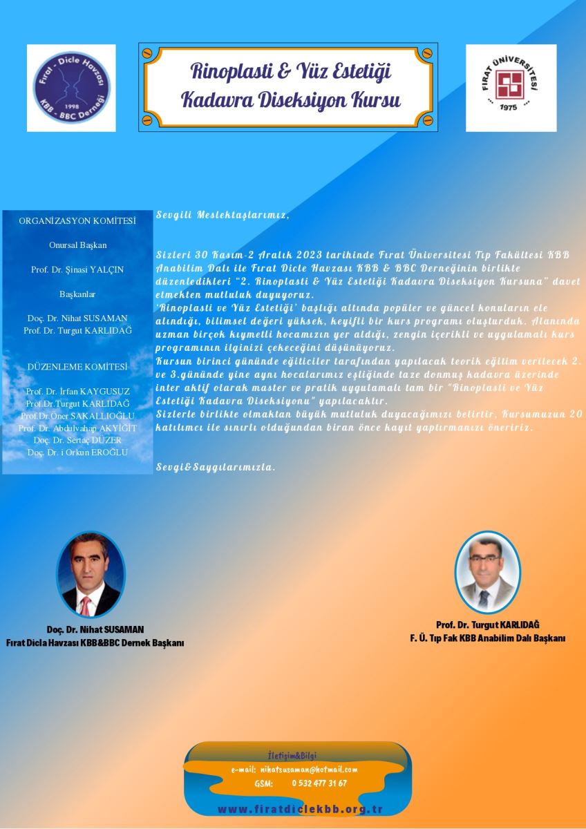 Rinoplasti & Yüz Estetiği Kadavra Diseksiyon Kursu: 30 Kasım - 2 Aralık 2023