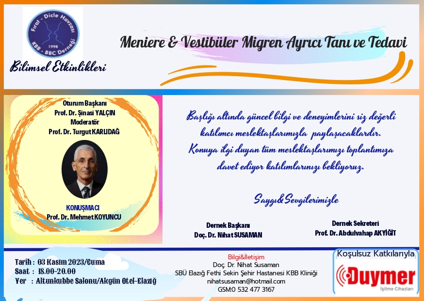 Fırat Dicle Havzası KBB BBC Derneği Bilimsel Etkinlikleri: 3 Kasım 2023