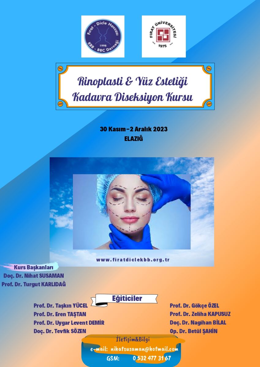 Rinoplasti & Yüz Estetiği Kadavra Diseksiyon Kursu: 30 Kasım- 2 Aralık Tarihlerinde Elazığda