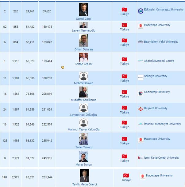 Elsevier ve Stanford Üniversitesi tarafından “Dünyanın En Etkili Bilim İnsanları” listesinde ilk sıralarda yer alan meslektaşlarımızı kutluyoruz.