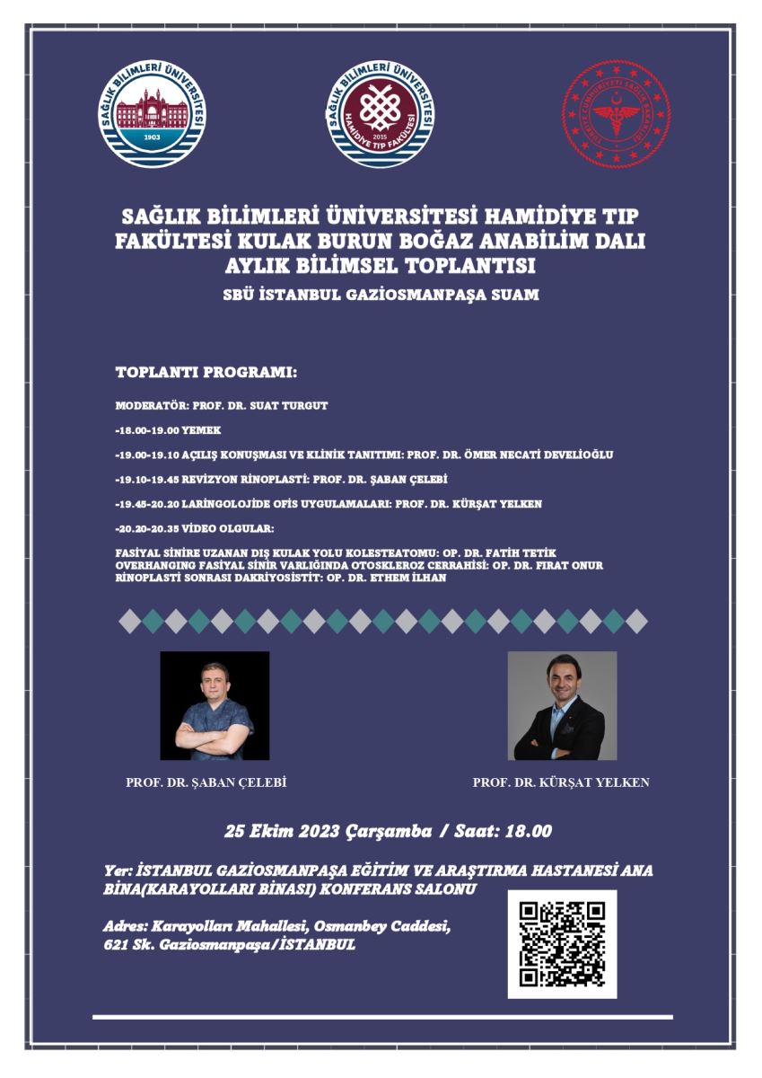 Sağlık Bilimleri Üniversitesi Hamidiye Tıp Fakültesi Kulak Burun Boğaz Anabilim Dalı Aylık Bilimsel Toplantısı: 25 Ekim 2023