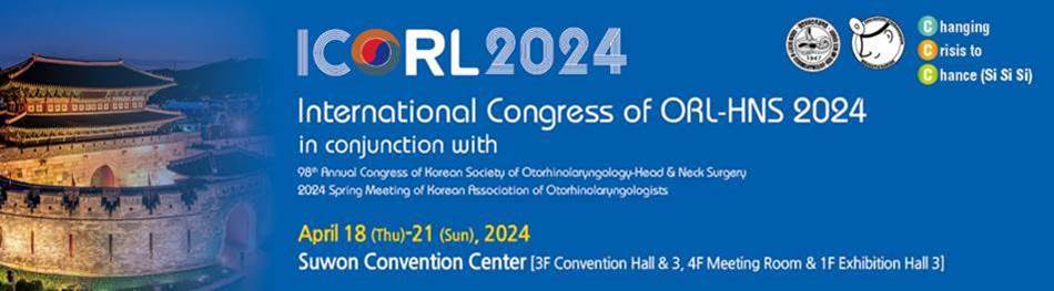 l Title: The International Congress of ORL-HNS 2024 (ICORL 2024) in conjunction with the 98th Annual Congress of Korean Society of Otorhinolaryngology-Head & Neck Surgery and the 2024 Spring Meeting of Korean Association of Otorhinolaryngologists