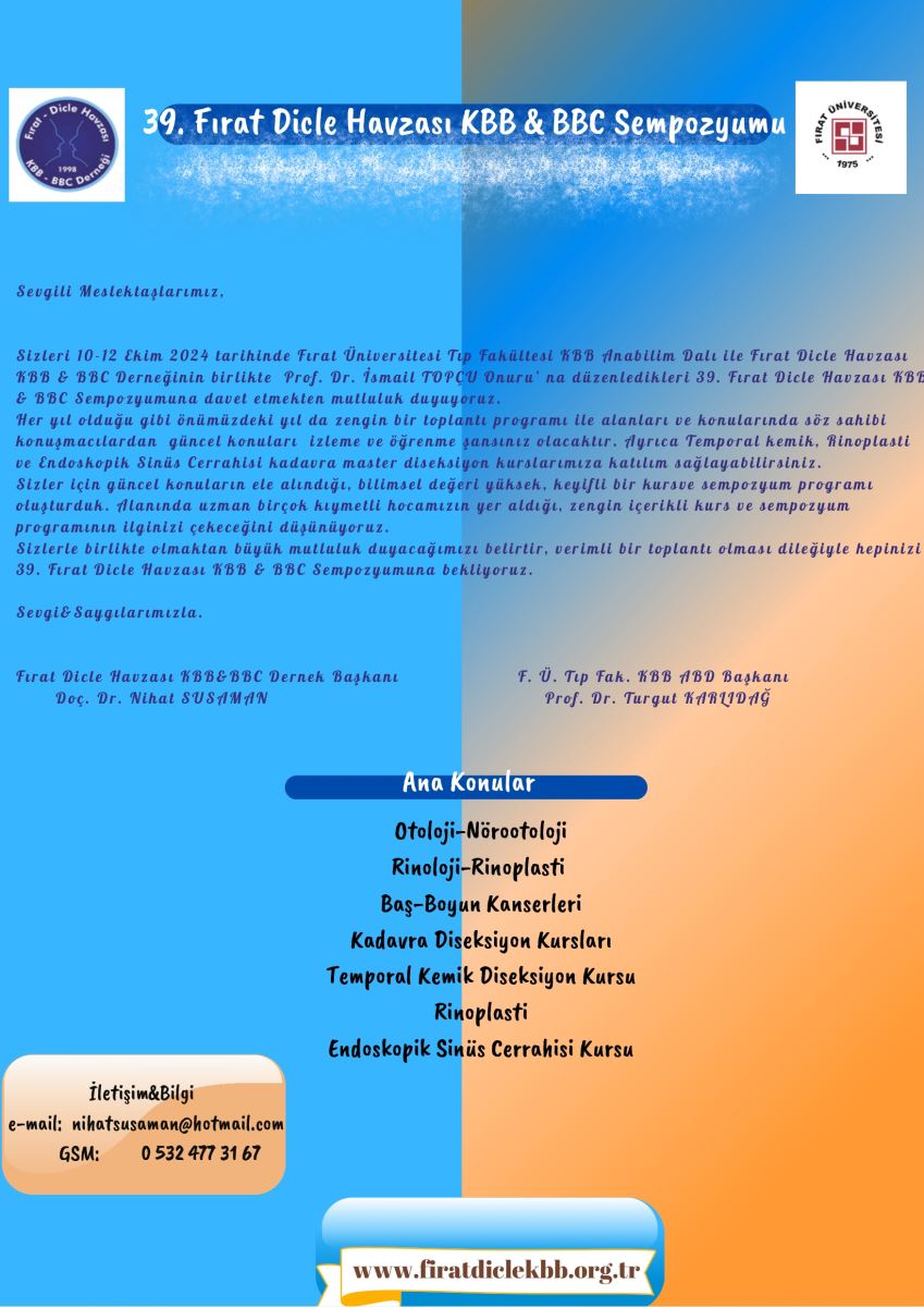 39.Fırat Dicle Havzası KBB & BBC Sempozyumu: 10-12 Ekim 2024
