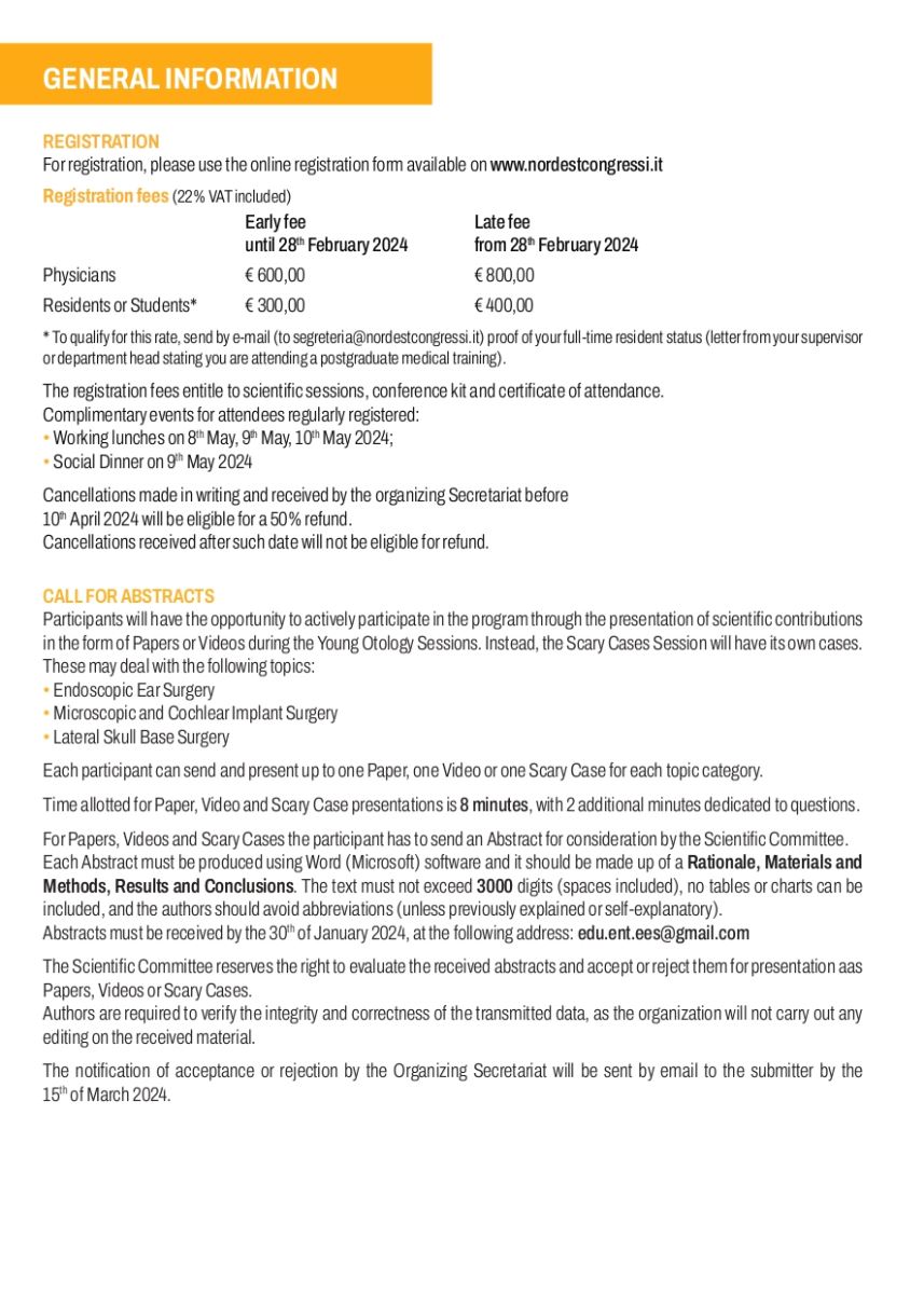 Internatıonal Workshop On Ear Surgery : Modena, 8-11 May 2024