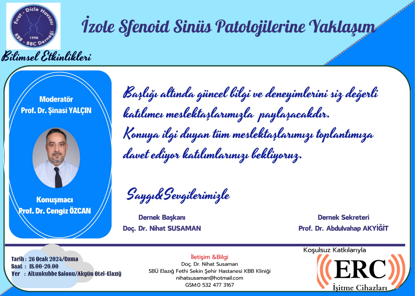Fırat Dicle Havzası KBB BBC Derneği "İzole Sfenoid Sinüs Patolojilerine Yaklaşım" : 26 Ocak 2024
