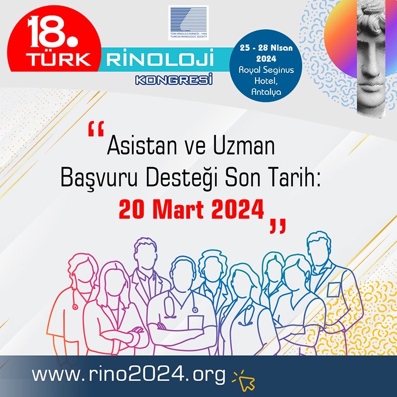 18.Türk Rinoloji Kongresi Asistan Uzman Desteği Son Başvuru Tarihi: 20 Mart 2024
