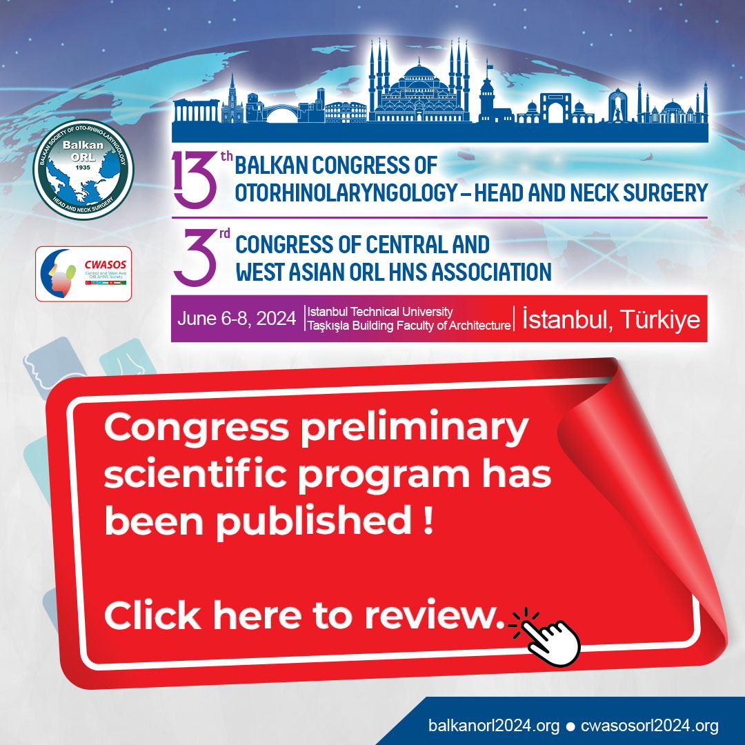 13th Balkan Congress of Otorhinolaryngology - Head and Neck Surgery & 3rd Congress of Central and West Asian ORL HNS Association Preliminary Scientific Program Has Been Published