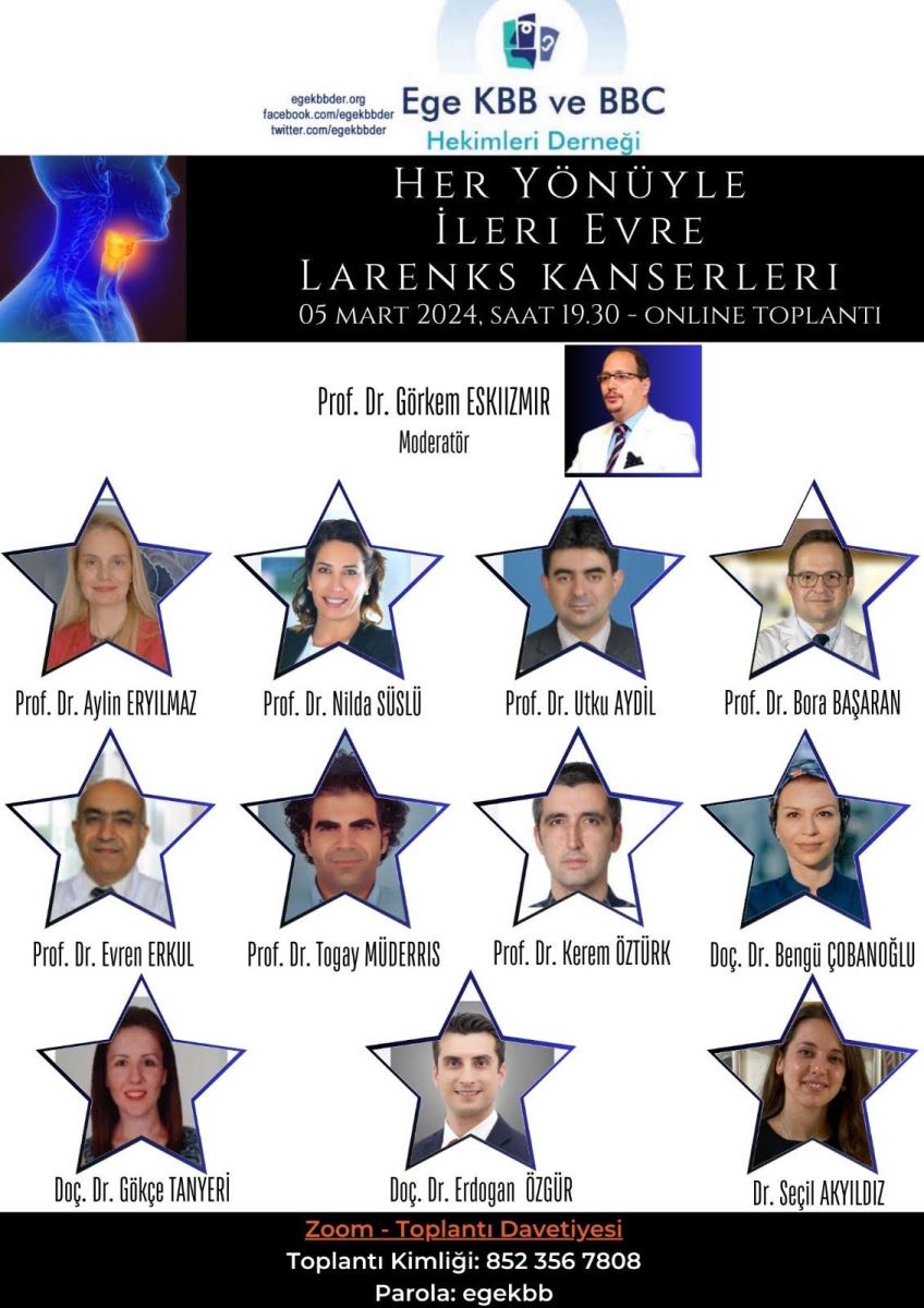 Ege KBB BBC Hekimleri Derneği "Her Yönüyle İleri Evre Larenks Kanserleri" Online Toplantısı: 5 Mart 2024