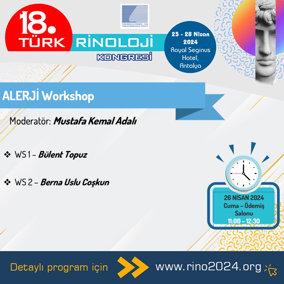 18 Türk Rinoloji Kongresi Alerji Workshop : 26 Nisan 2024