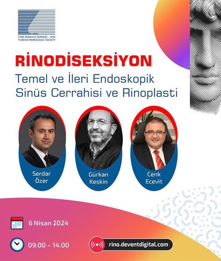 Türk Rinoloji Derneği, eğitim aktivitelerine devam ediyor. 6 Nisan 2024 tarihinde TORLAK merkezimizden canlı olarak master kadavra diseksiyonları yapılacaktır. ONLİNE yayınlacak olan diseksiyonlarda Endoskopik Sinüs Cerrahisi ve Rinoplasti ilgili teknikler anlatılacaktır. Prof. Dr. M. Cenk Ecevit, Prof. Dr. Gürkan Keskin ve Prof. Dr. Serdar Özer hocaların yer alacağı bu aktiviteye kayıt yaptıranlar arasından yapılacak çekilişle 3 meslektaşımızı 18. Türk Rinoloji Kongresinde misafir edeceğiz.